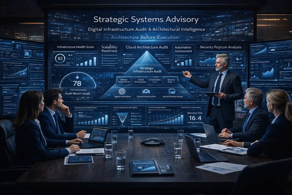 We deliver executive-grade Digital Infrastructure Audits and scalability modeling to ensure technology investments align with growth strategy, risk management, and long-term operational resilience.