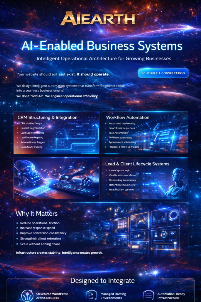 AI-Enabled Business Systems at AIEarthβ’ transform fragmented digital tools into structured operational ecosystems.