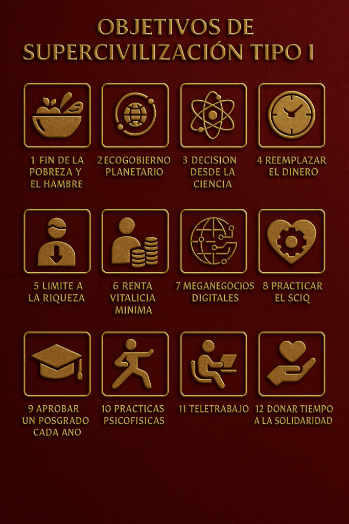La humanidad enfrenta una encrucijada histórica: permanecer atrapada en conflictos, desigualdades y crisis ambientales, o dar un salto evolutivo hacia la categoría de Supercivilización Tipo I, capaz de gestionar el planeta como una unidad consciente, justa y sostenible.