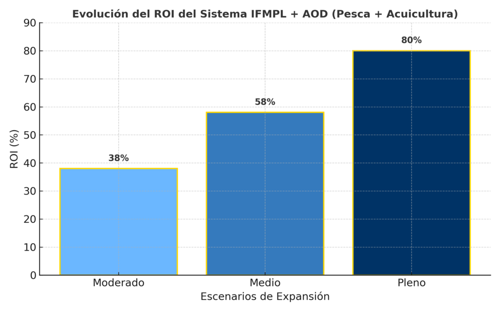 • ROI combinado (pesca + acuicultura) > 80 %.