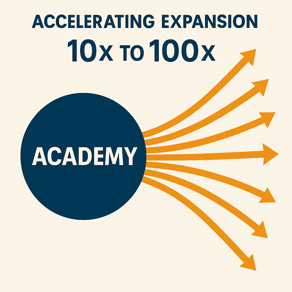 La incorporación de FishAgency Academy transformó el crecimiento del sistema en un proceso exponencial: cada alumno formado se convierte en un nuevo nodo activo del ecosistema. La academia no solo educa, sino que recluta, produce y replica, estandarizando el conocimiento y multiplicando por 10 a 100 la velocidad de expansión global. Así, cada egresado es un comunicador, un vendedor y un embajador que extiende la red con eficiencia orgánica y coherencia institucional.