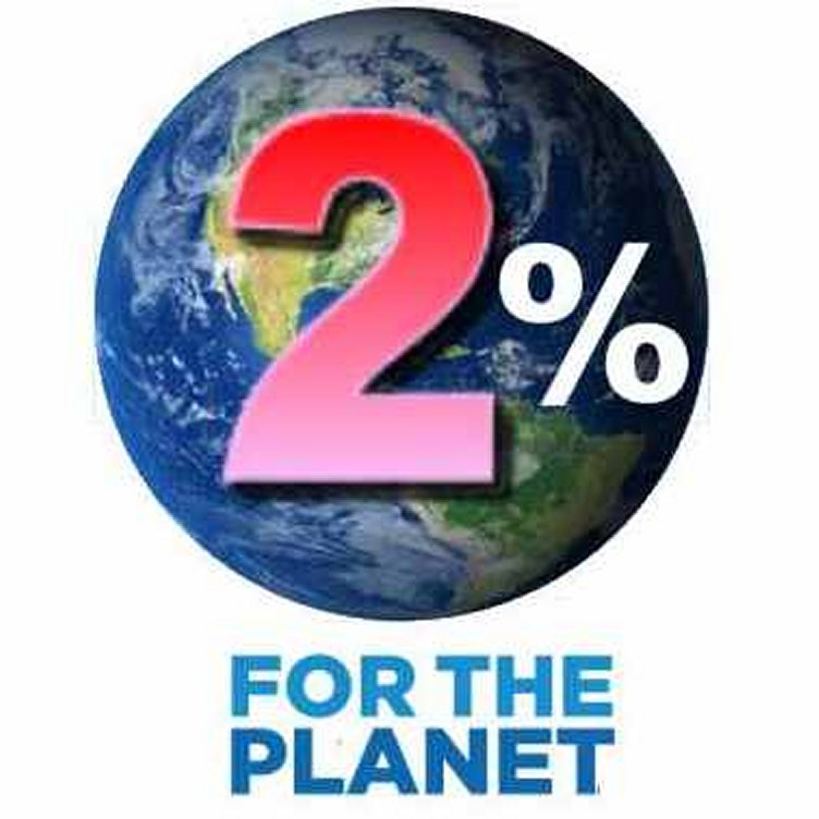 • Pin y lema “2% FOR THE PLANET” visible sobre la entrada.