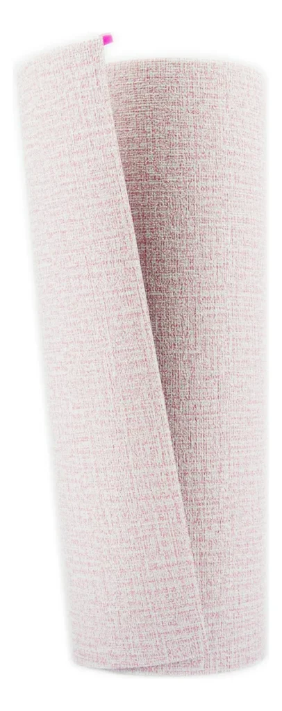 • Empapelado autoadhesivo (ref: papel1.webp) en muro principal: textura textil clara para dar “profesional + cálido”; imprime bien la marca sin brillos.