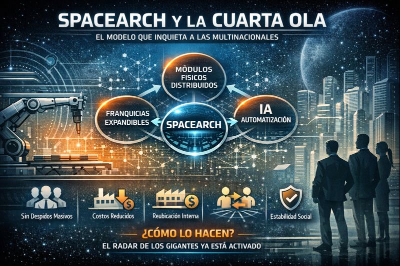 El Modelo de Transición Humano–IA SpaceArch propone una arquitectura alternativa a la automatización tradicional, basada en redes de unidades físicas distribuidas y franquicias verticales autónomas.