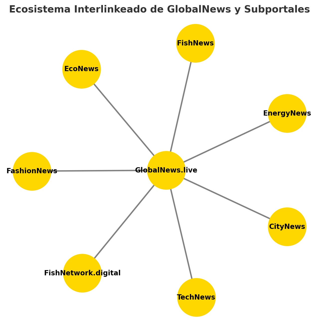 Notas: El hub central interconecta todos los portales, actuando como multiplicador de tráfico y consolidando la red global.