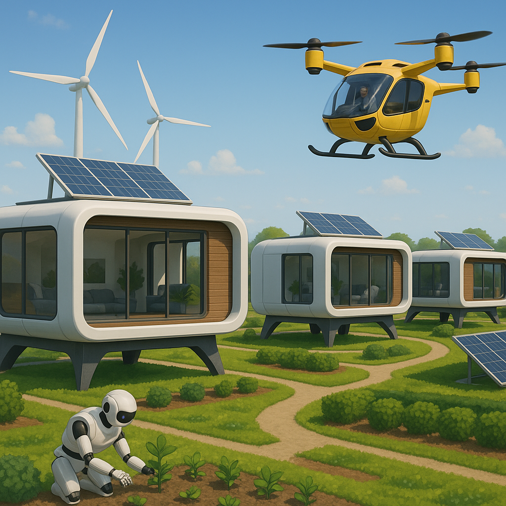 🌱 Agri-Tech Farms → Robotized farms run by AI (fruits, vegetables, poultry, honey).