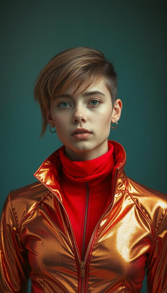 Materialidad clara (metalizados, cueros técnicos, brillo controlado).