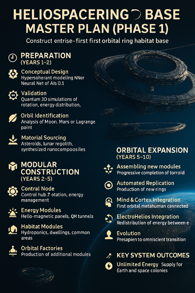 - integrarse con una red energética solar orbital (ElectroHelios) y una red logística interplanetaria.